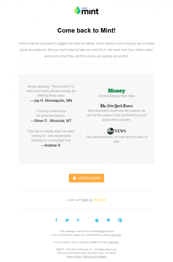 Shared by Amanda Soehnlen Show Plain Text Email Hello, We know we mentioned this recently, but we've missed your visits to Mint.com. We're launching new features every month and now support brokerage, 401K and other investment accounts. Here's Lifehacker's take on these improvements: "Mint, the web-based financial management application that took us by storm a few months back, is adding investment tracking to their already impressive feature set. Mint's investments,...